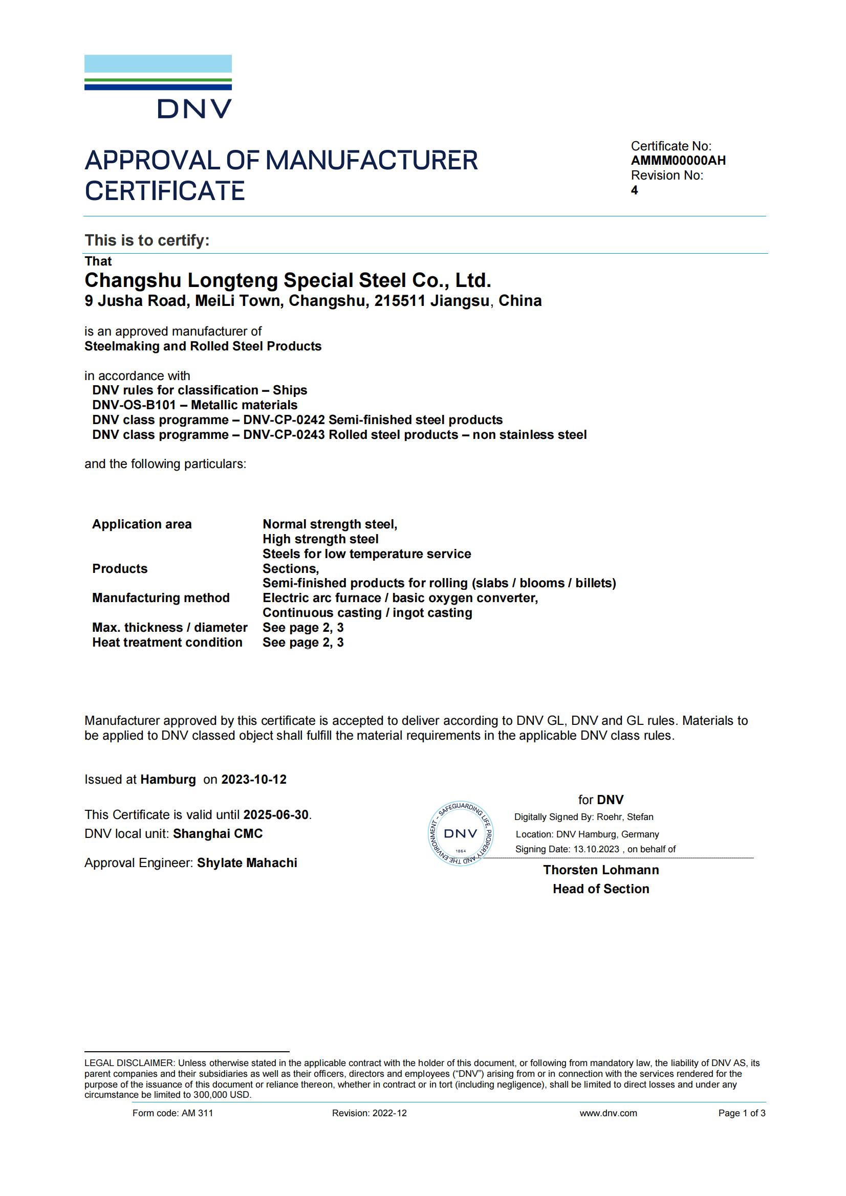 獲9大船級(jí)社認(rèn)證公司產(chǎn)品通過(guò)中國(guó)船級(jí)社、挪威船級(jí)社、美國(guó)船級(jí)社、英國(guó)勞埃德船級(jí)社、日本海事協(xié)會(huì)、法國(guó)船級(jí)社、韓國(guó)船級(jí)社、意大利船級(jí)社、俄羅斯船級(jí)社9國(guó)認(rèn)可,并通過(guò)TUV、DB、CE認(rèn)證、加拿大鋼結(jié)構(gòu)CWB認(rèn)證,沙特SASO認(rèn)證等